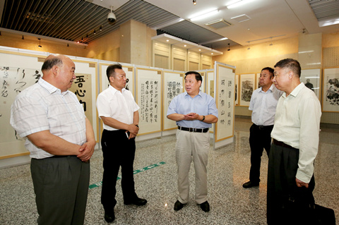 为重温中国共产党的光辉伟业,再现中国共产党的丰功伟绩,6月27日,由市委、市人大、市政府、市政协联合举办的庆祝中国共产党成立95周年书画展在四平战役纪念馆门前举行。省政协党组副书记、副主席王尔智,市委书记赵晓君,市人大常委会主任郭文培,市政协主席杨枫出席开幕式。