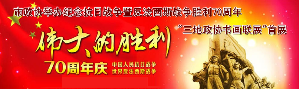 “前事不忘,后事之师”。上个世纪三四十年代,日本军国主义的铁蹄践踏在中华民族的大地上,对中国的肆意凌辱和野蛮侵略,使中国陷入了前所未有的民族灾难。千千万万中华儿女浴血奋战,英勇抵抗,终于取得了抗日战争的伟大胜利。但是那段艰苦的岁月,屈辱的历史,我们永远不能忘记。 2015年9月3日,是中国人民抗战暨反法西斯战争胜利70周年纪念日。为了铭记历史、缅怀先烈、珍爱和平、开创未来,重温先辈们不屈不挠、视死如归的英勇豪情,弘扬爱国主义精神,共筑中国梦。四平市政协书画院、延边州政协、辽源市政协、联合举办了这次纪念中国人民抗战